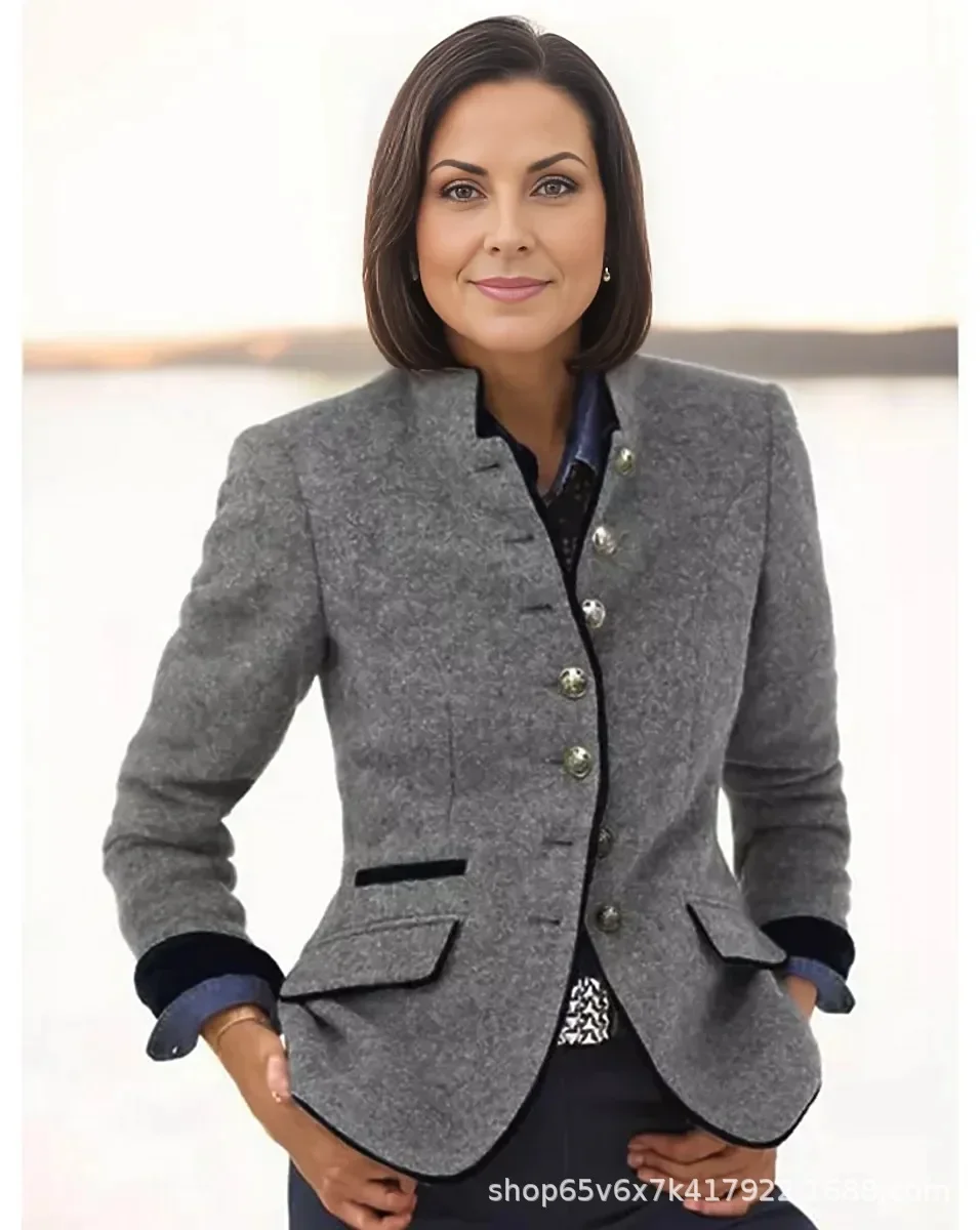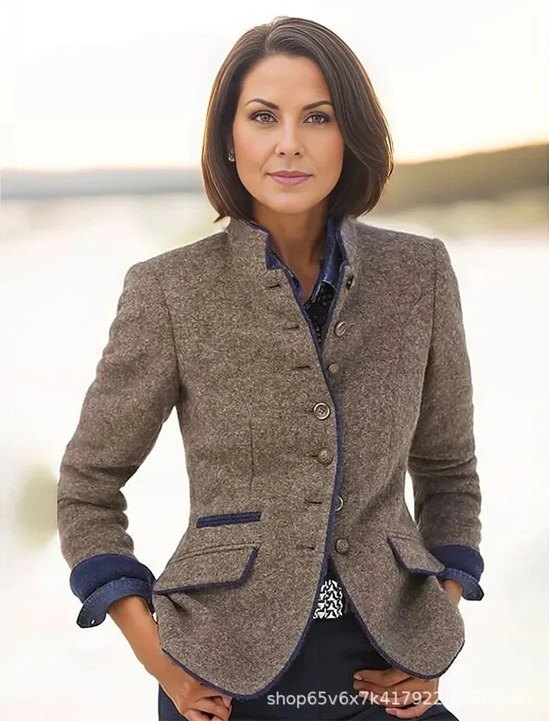 2024 Casual Fast Selling Women's Woolen Jacket Amazon Best Seller Multi-Button Color Block Spring New Style Loose Fit Coat