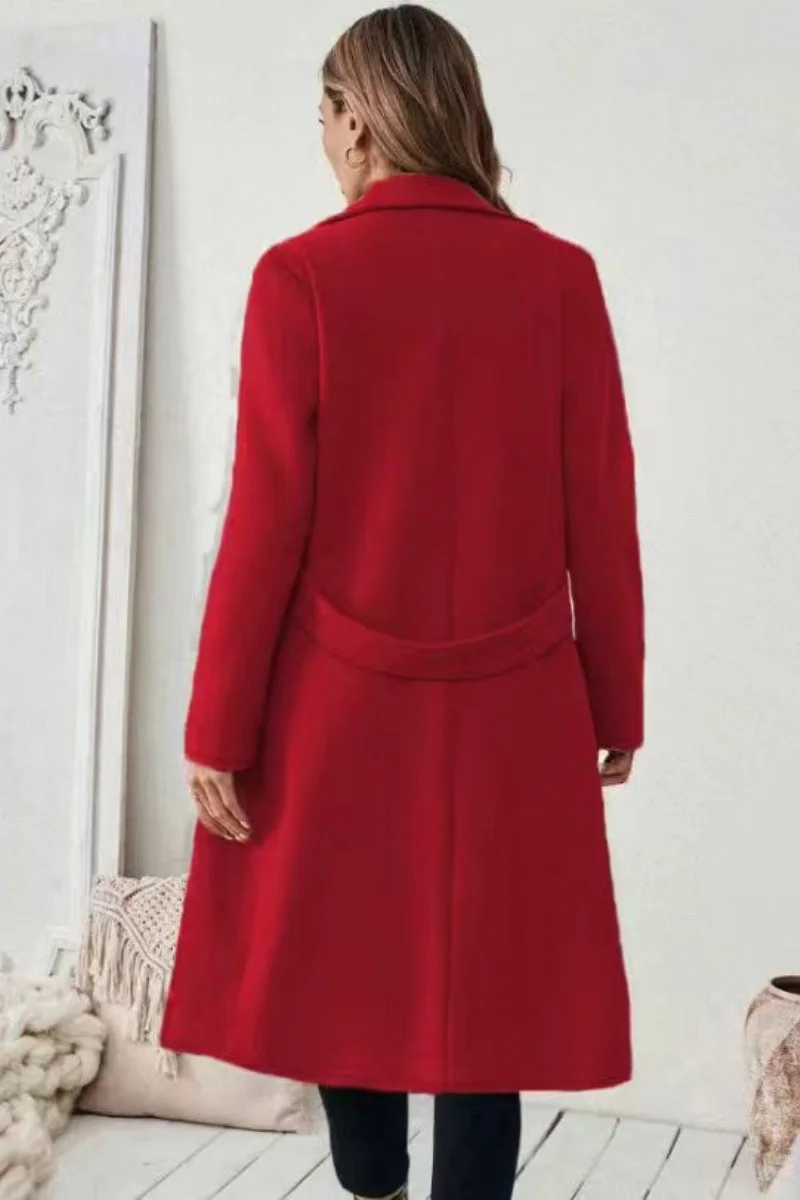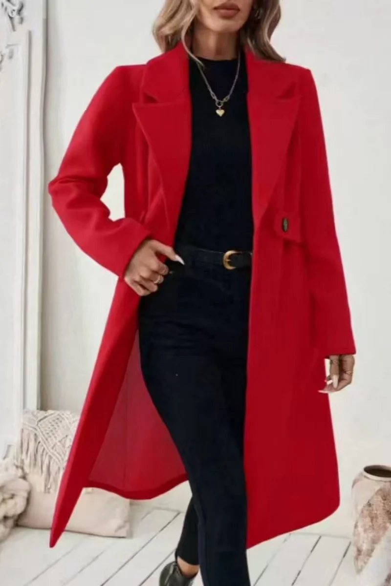 ew European and American cross-border woolen coat, medium-length, women's Korean version, 2025 new style, slimming, waist-cinchi