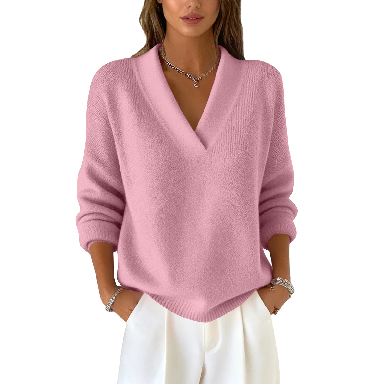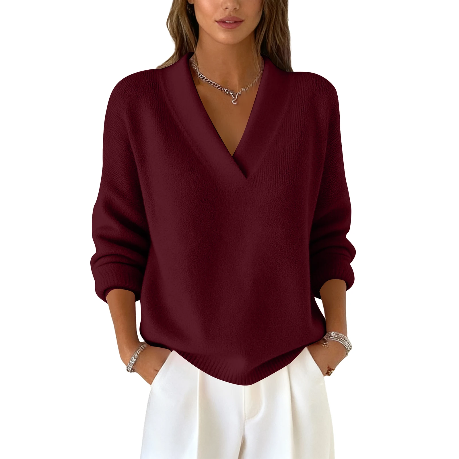 Knitted Sweater Top Pullover Women'S Top Fashionable Long-Sleeved Solid Color V-Neck Daily Multi-Color Popular Network Celebrity