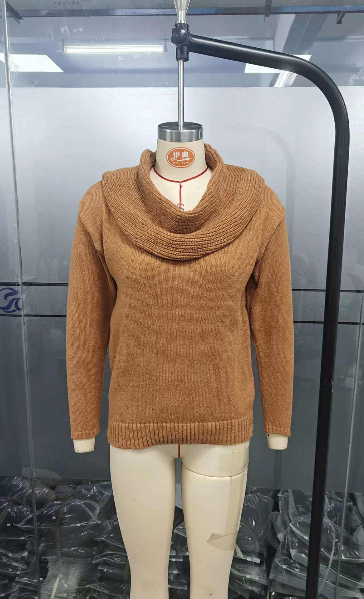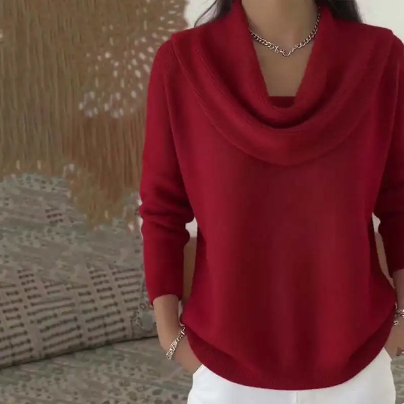 Women Autumn Winter Pullover Sweater New Solid Color Stacked Collar Long Sleeve Comfortable Female Casual Pocket Pullover